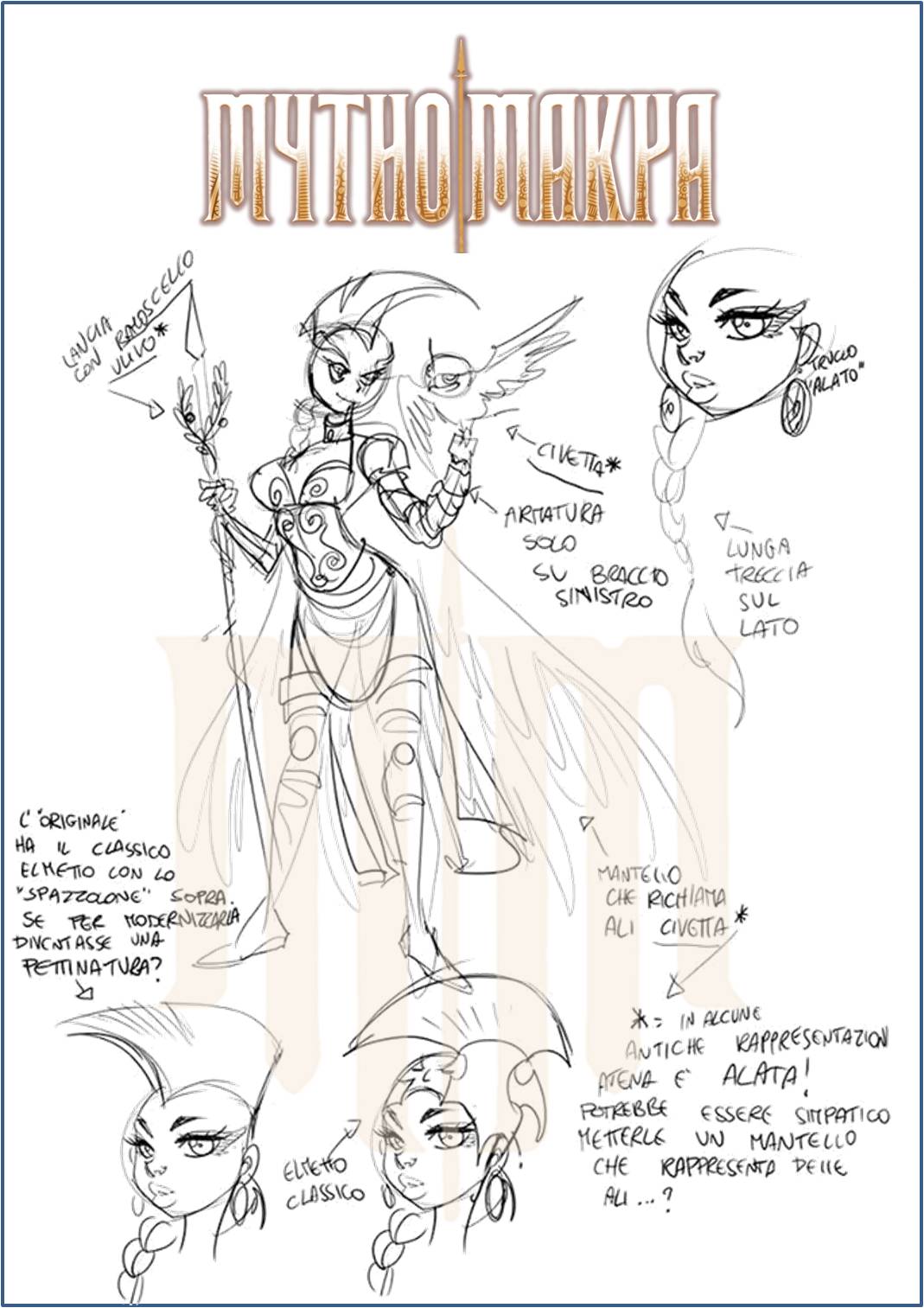 Per curiosità, condividiamo lo studio preliminare fatto su Atena, anche per farvi notare un pò di particolari della nostra prima illustrazione!